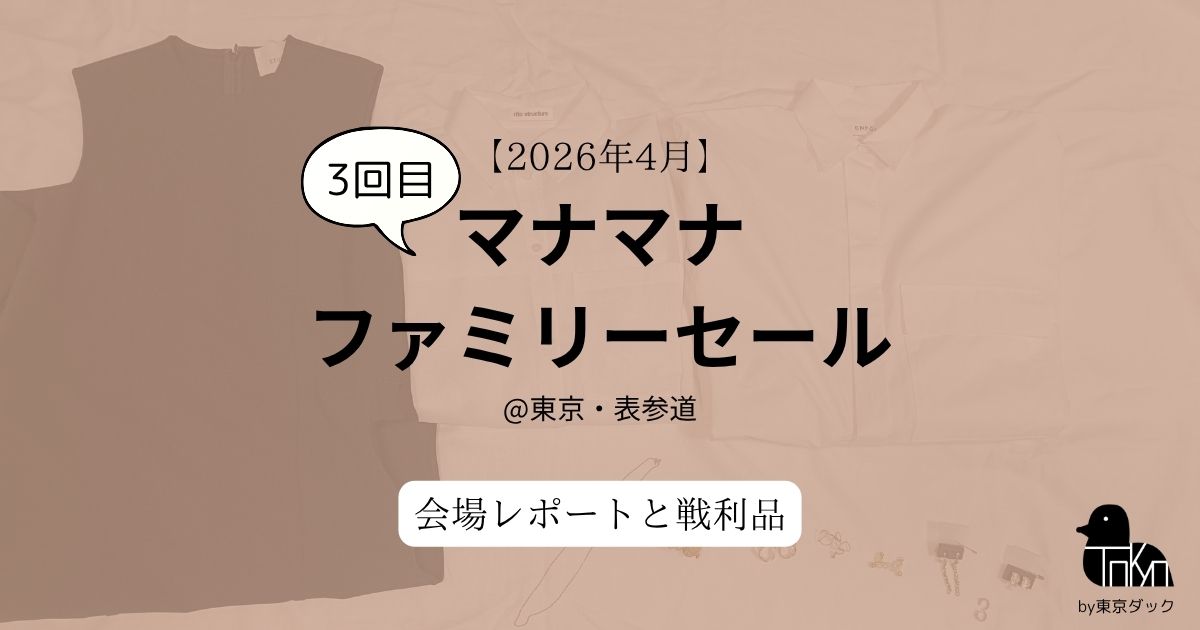 ハイブランドやデザイナーズブランドがほぼ85%OFFで購入できるマナマナ(mahna mahna)のファミリーセールに参加してきました。今回で3回目の参加です。 2026年4月24日(金)の初日の会場の様子はどうだったのか、戦利品の詳細など、詳しくご紹介していきま...