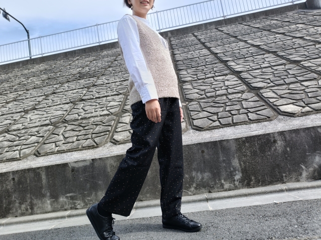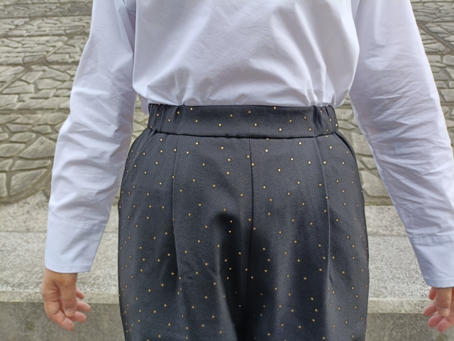 箔ドットが上品でいろいろな服に合わせやすいテーパードパンツ