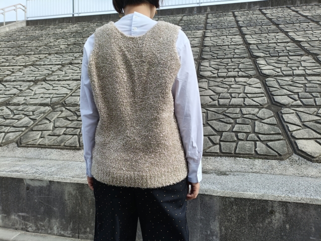 前後2WAY仕様のニットベストは想像以上にラメが光り輝く