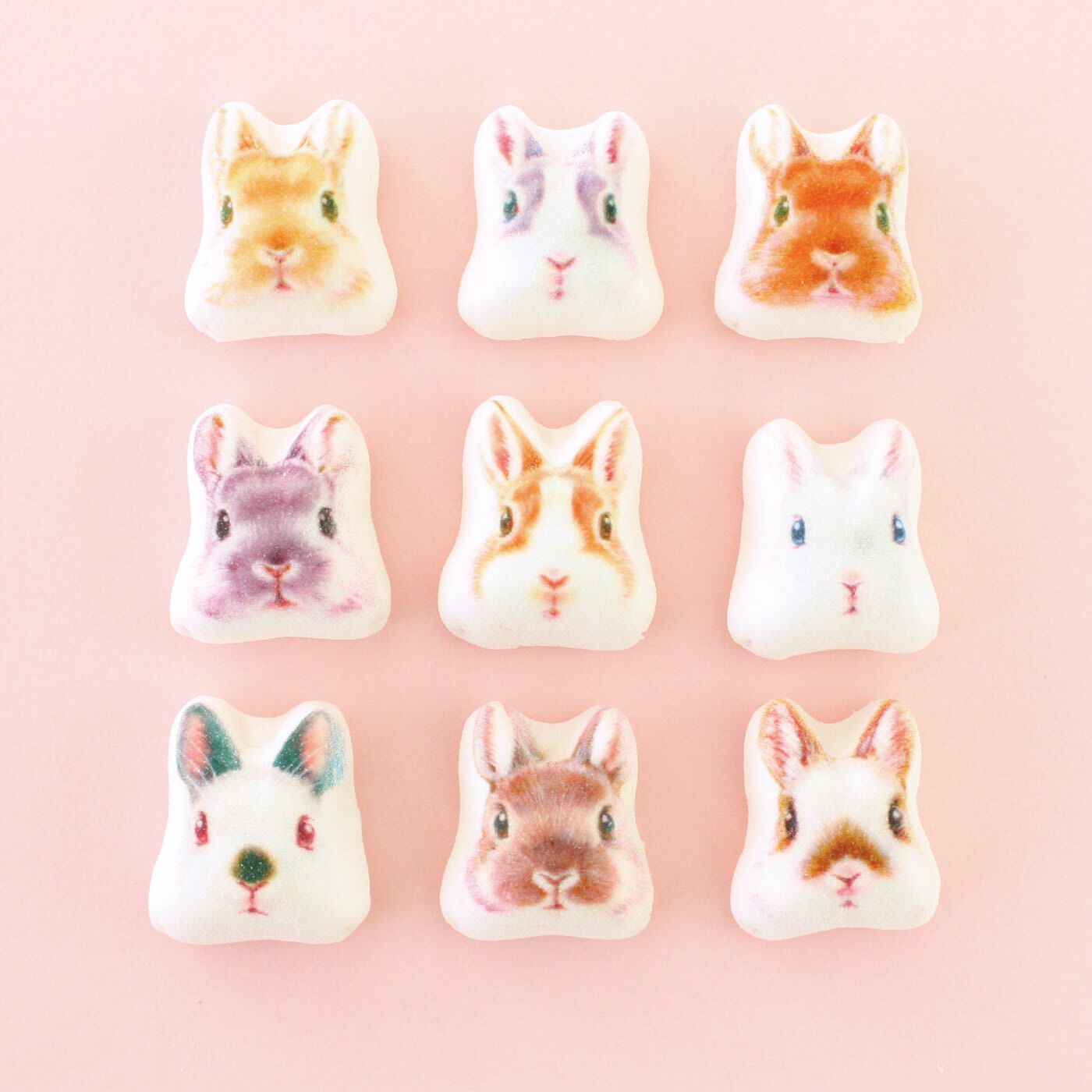 砂糖(国内製造)、水飴、餡、寒天、ココアバター、全粉乳、カカオマス、卵白(卵を含む)、寒梅粉、澱粉/レシチン(大豆由来)、香料、着色料(赤102、赤106、黄4、青1)