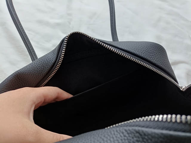 内ポケットが2か所あり、ファスナー付きと無しで用途を分けることができます。