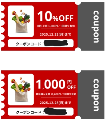 イトーヨーカドーネットスーパーby ONIGOのメールマガジンを購読していると、毎週金曜日に「メルマガ限定クーポン」が届きます。