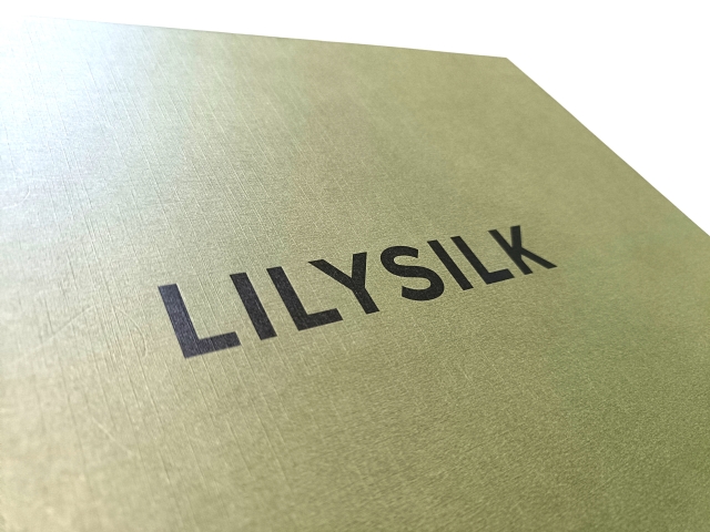 リリーシルクのギフトラッピングは、グリーンの箱に「LILYSILK」のロゴが印刷されています。箔押し加工というのでしょうか?ロゴ部分がほんの少し窪んでいて、陰影を感じられます。
