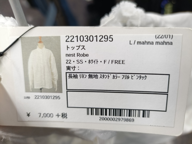 タグに記載された金額は、マナマナでレンタルされていた料金です。定価のおよそ70%割引の価格がレンタル料金として設定されているとのこと。