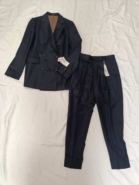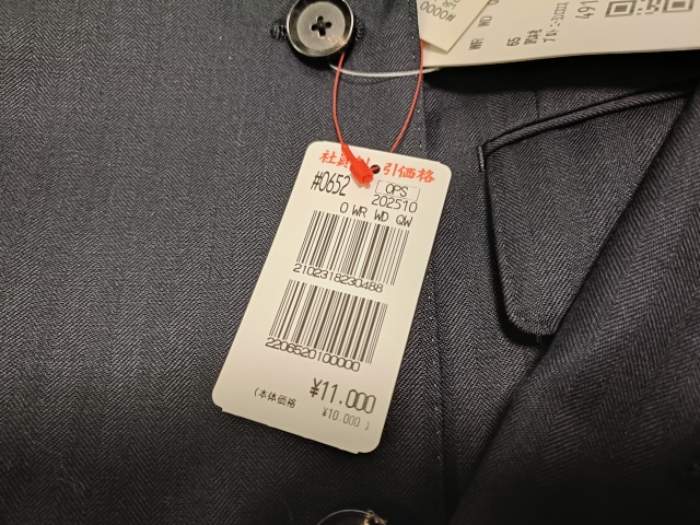 とはいっても、こちらはウール100%で、水牛ボタンなどオプションもたくさんありそうなので、おそらく10万円近くすると思います。