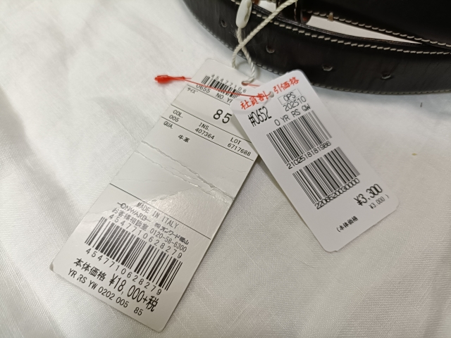 メンズ館でレディースのスーツを見ていた時に近くのワゴンで販売されていたレザーベルト。