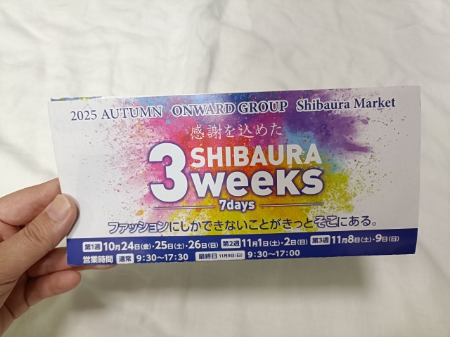 2025年10月から開催されているオンワードのファミリーセール(@東京・芝浦第三ビル)の初日に参加してきました。