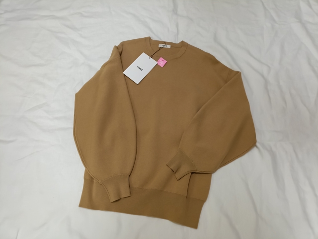 シンプルだけど、袖がバルーンでかわいいし、肌触りがなめらかで毛玉にならない気がする♪
