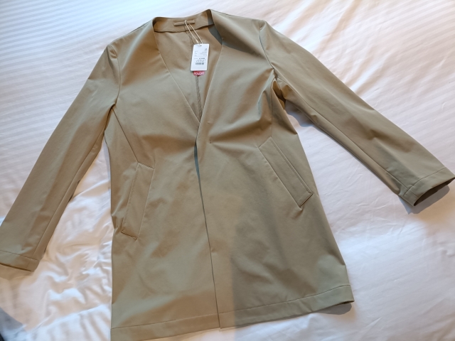 なぜかレディースコーナーで販売していて、試着したらぴったりだったノーカラーコート。