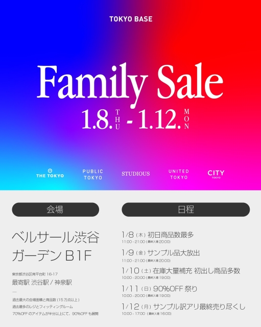 TOKYOBASEファミリーセール2026年冬の概要