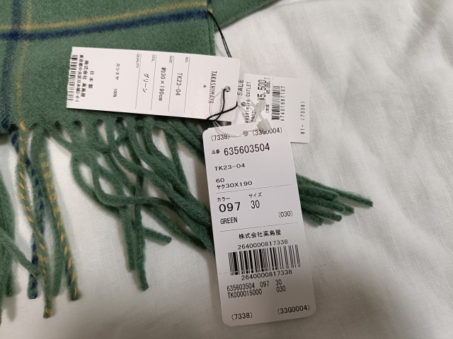 高島屋 カシミヤ100%マフラー