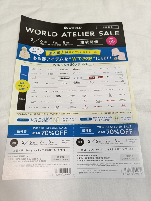 招待状はワールドプレミアム会員+アトリエセールメールマガジンの登録で貰えます。