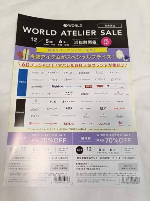 ワールドのアトリエセール(ファミリーセールみたいな催事)は3回目の参加です。