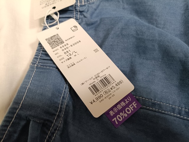 普段より大きいサイズしか残っていなかったけど、裾上げもかんたんにできそうなので購入。