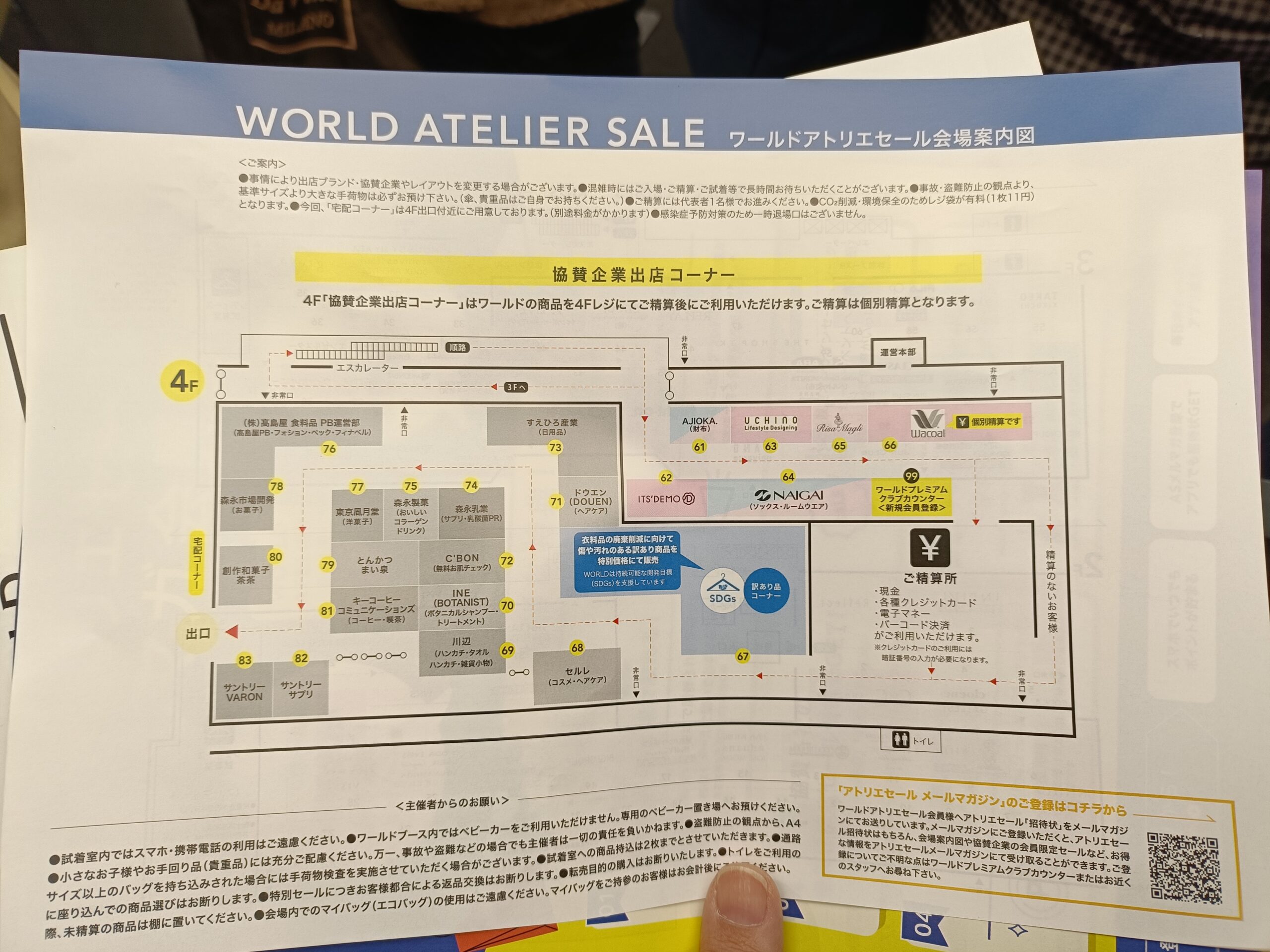 ワールドのアトリエセールのメールマガジンに登録しておくと、招待状が届きます。